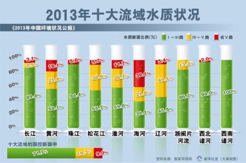 河流——全國(guó)十大水系水質(zhì)一半污染,全國(guó)地表水總體輕度污染,其中黃河、淮河、海河、遼河、松花江五大水系水質(zhì)污染,水系污染程度由重到輕順序?yàn)椋哼|河、海河、淮河、黃河、松花江、珠江、長(zhǎng)江。其中遼河、淮河、黃河、海河等流域都有70%以上的河段受到污染……
